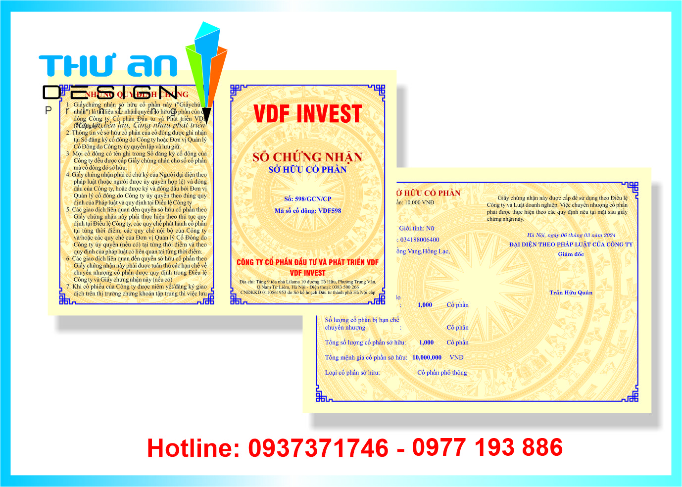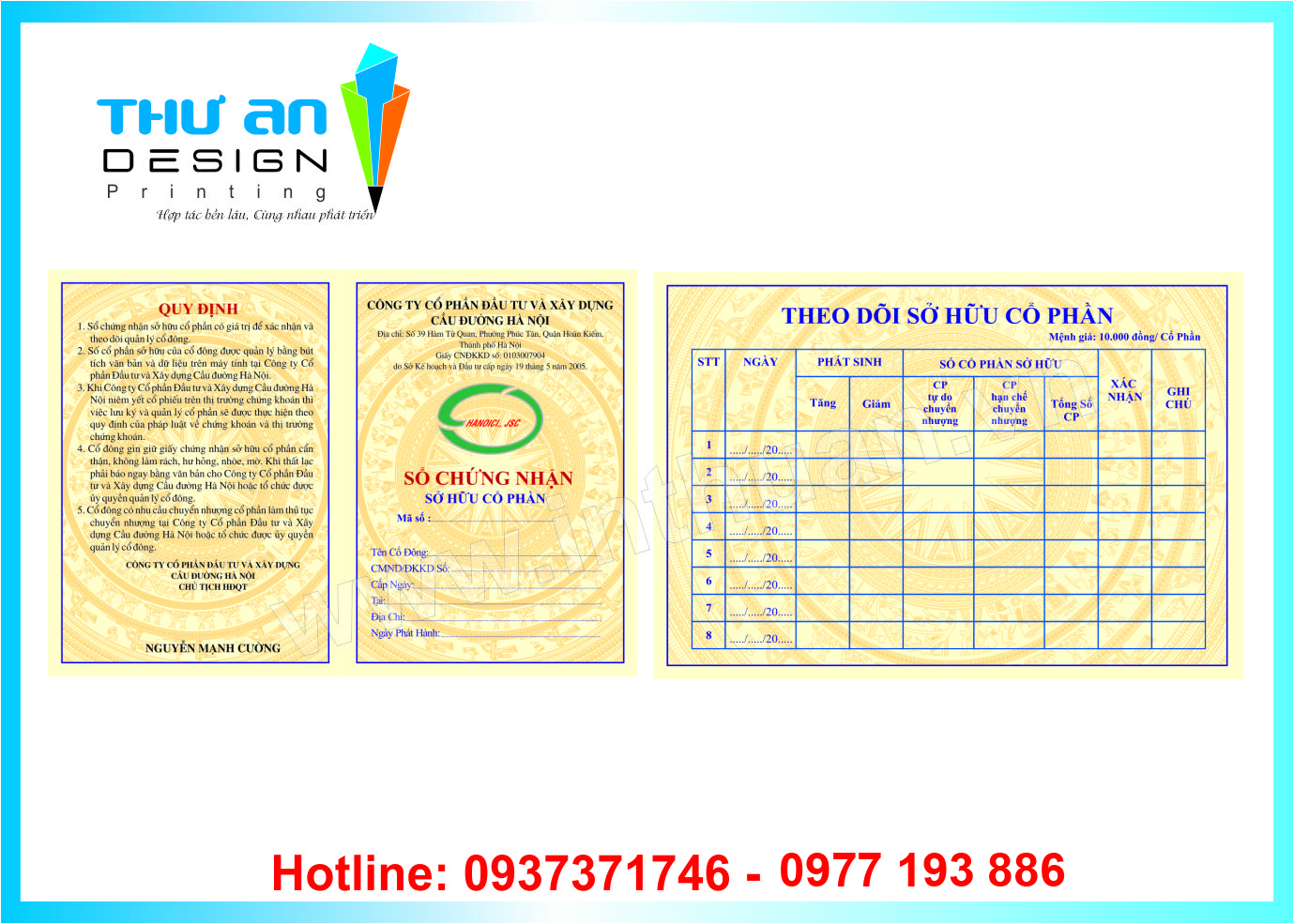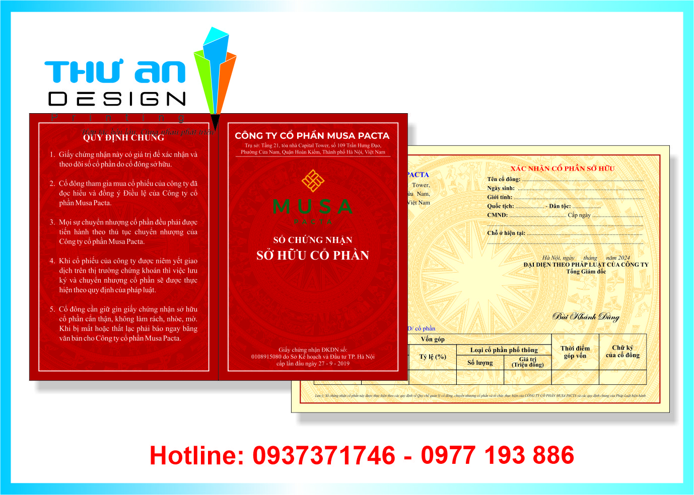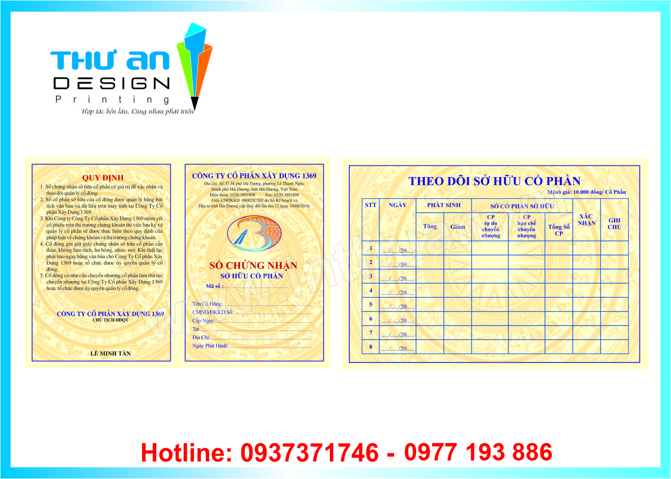 Có phải bạn đang muốn tìm địa chỉ In Sổ Cổ Đông ? Công ty in Thư An chính là sự lựa chọn phù hợp khi muốn làm Sổ Cổ Đông, giấy Chứng Nhận Sở Hữu Cổ Phần theo yêu cầu riêng, in số lượng ít hoặc có quy cách khác biệt. Đặc biệt, bạn có thể đặt làm Sổ Cổ Phần Online, không cần phải đến đặt hàng tận nơi.